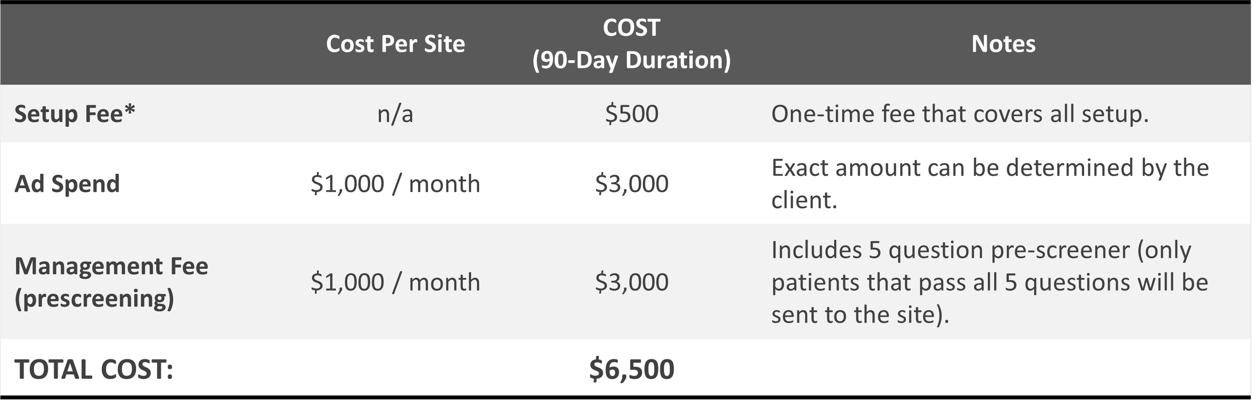 We help recruit patients both from within your database and target new outside patients through targeted digital marketing campaigns.